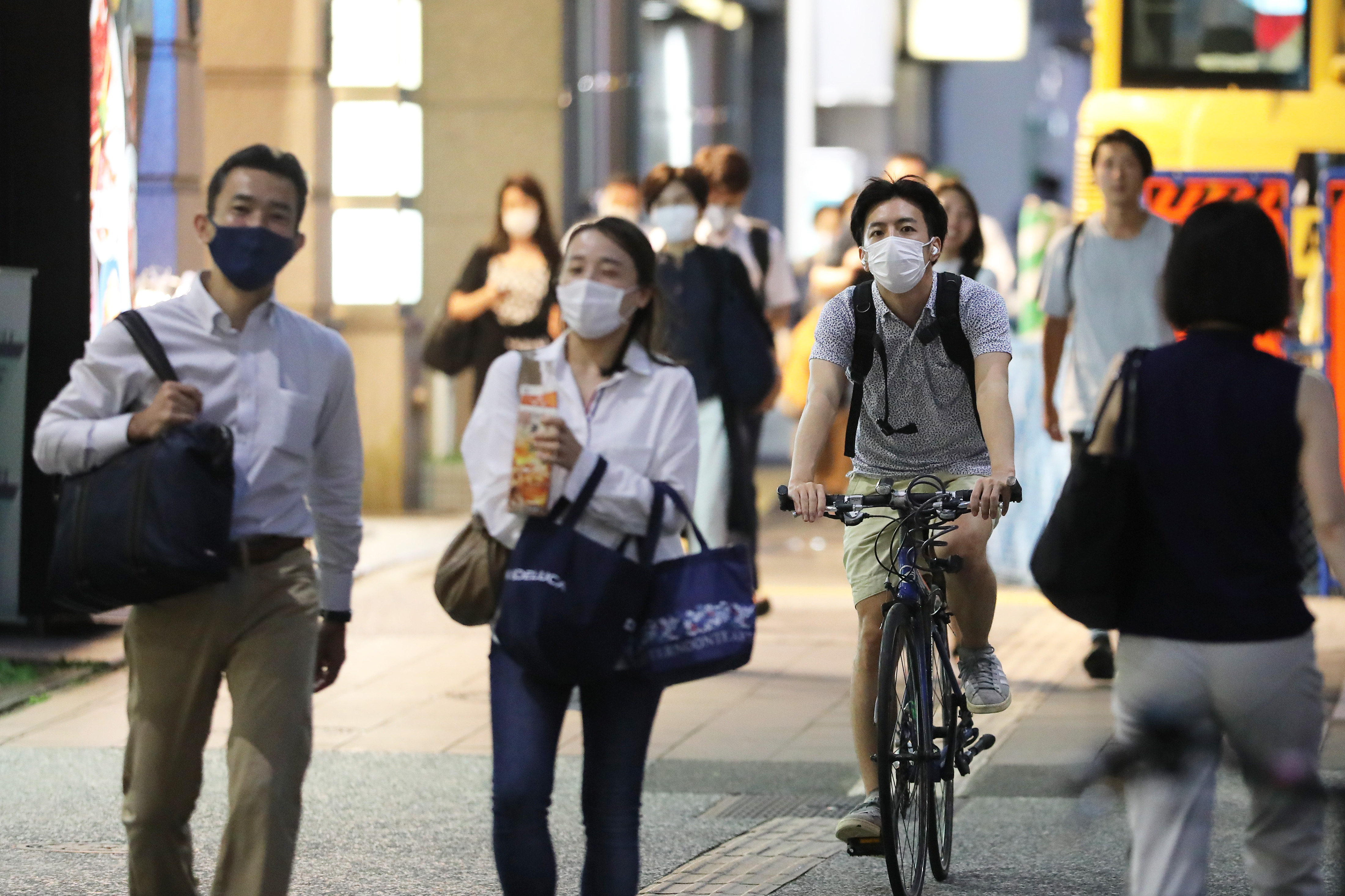 9月2日,在日本东京,人们戴口罩出行。(新华社记者杜潇逸摄)